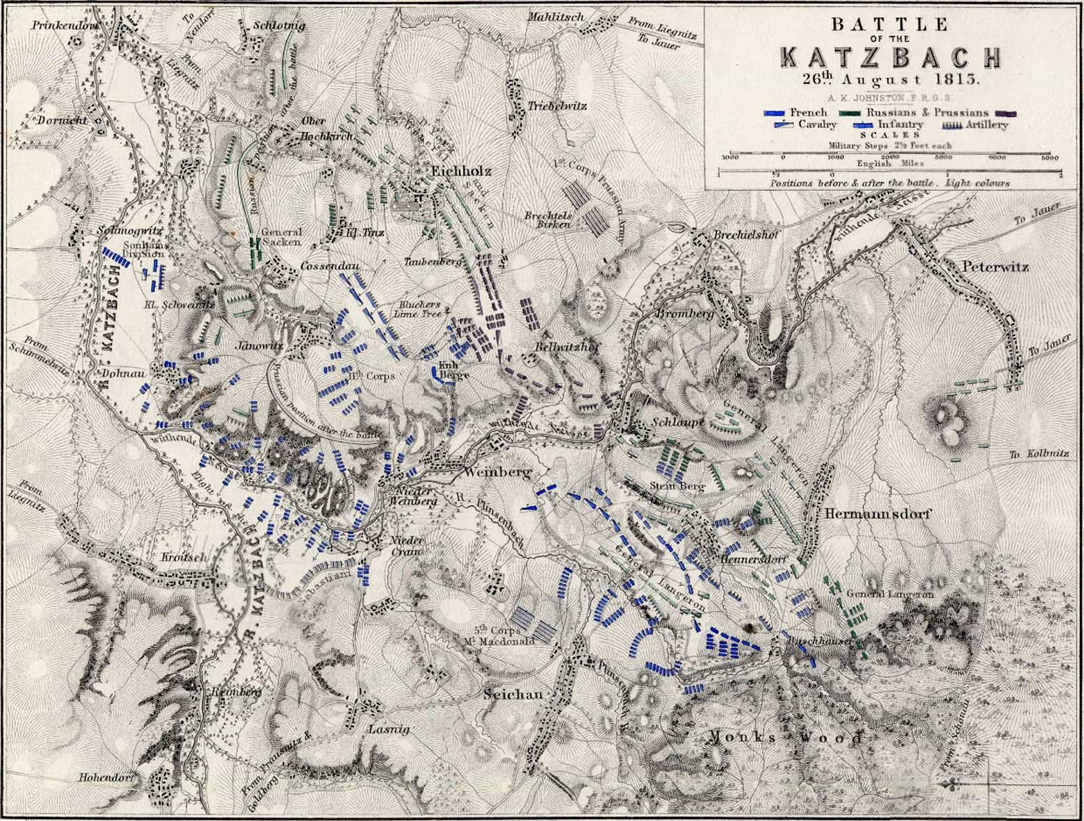 At the start of the Autumn campaign Napoleon moved eastwards with the intention of defeating Prince Gebhardt Blücher’s Army of Silesia, which was advancing towards Saxony. On August 21 Blücher learnt that he faced Napoleon, so retreated in accordance with the Trachenberg Plan.